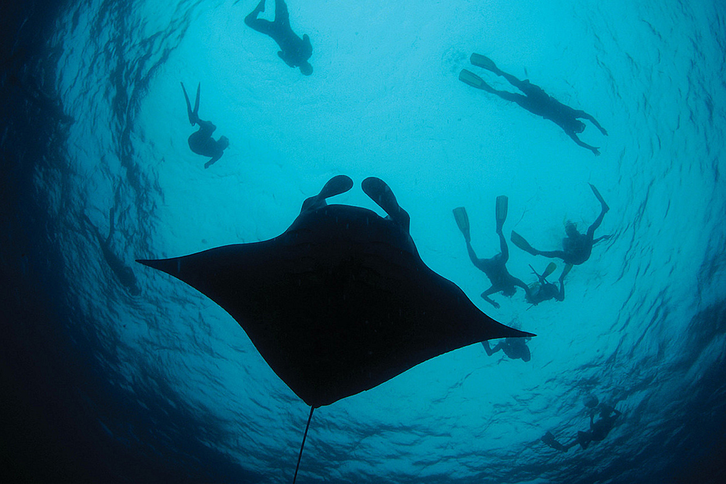 L'eau est froide, et, il faut vous y attendre (peut-être), vous nagerez au milieu de minuscules méduses qui piquent (un peu). Quelque seconde pour m'acclimater, sentir le courant, les vagues que mon amie pousse un "hurlement tuba" (vous voyez de quoi je parle), je redresse ma tête, elle est là, elle fait 2 fois mon gabarit (la raie, pas mon amie), d'une grâce et d'une douceur qui vous fige, plus personne ne nage, plus personne ne respire : nous sommes subjugués. Elle est là, face à nous, et nous avons presque honte d'être ici avec tout notre attirail de plastique fluos, à lutter dans les vagues pendant qu'elle, elle vole, elles volent. Il y en a plein, elles passent au dessus, en dessous sans craintes, on voit leurs ombres se dessiner au loin. Elles imposent un respect par leur délicatesse et la façon dont elles viennent vers nous, non parce qu'elles sont intriguées (peut-être un peu quand même), mais plutôt parce qu'elles mangent, leur gueule grande ouverte, elles ne s'embarrassent pas à vous éviter, c'est à vous de respecter ce moment privilégié, et je ne peux que saluer le fait que tous les touristes présents ont joué le jeu de l'humilité.